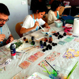L’atelier Marbrure propose aux participants de plonger dans la technique ancestrale du papier marbré aussi appelée « Ebru ». Chaque participant pourra faire ses propres papiers marbrés en laissant libre court à son imagination en s’émerveillant du résultat riche en couleurs et en motifs ! Les fonds crées avec la technique de la marbrure pourront être, dans un second temps, transformer par le dessin, le collage et le bricolage pour fabriquer des petits objets du quotidien tels que des cartes de vœux, marque-page, mobile, etc… A partir de cette technique ancienne adaptée au goût du jour, les participants pourront mettre à profit la marbrure pour développer leur créativité avec simplicité!