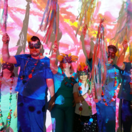 Depuis 2012, Ayda-Su Nuroglu co-crée des spectacles mêlant projections, arts plastiques et danse avec des personnes en situation de handicap mental et psychique dans les ateliers hebdomadaires de l’association Personimages, en binôme avec une danseuse professionnelle. A la suite des spectacles crées durant l’année, les artistes-intervenantes accompagnent le groupe dans ce Festival en Hongrie afin de présenter leur travail en direct. En favorisant l’épanouissement par la création artistique, ces ateliers multidisciplinaires où arts plastiques et danse se mêlent de façon vivante et poétique à travers jeux de lumière, couleurs et musiques, offrent l’occasion de s’exprimer, de communiquer par l’art leur différence et leur richesse intérieure.