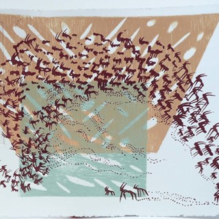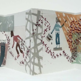 Imprimé en sérigraphie, taille d’épargne et gravure par un collectif d’artistes de l’Atelier aux Lilas pour la Typographie et l’Estampe.