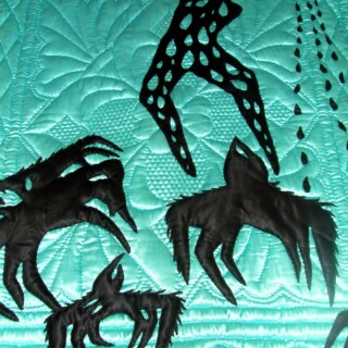 Travail artistique s’inscrivant au croisement de l’art textile, de l’installation, de la broderie et de la couture prenant comme inspiration l’art traditionnel anatolien de courtepointe en laine, réalisé par les femmes en préparation de leurs dots. Cette série de couverture en laine et satin aux couleurs vives a été récolté dans la propre famille de l’artiste, qui a ensuite brodé et cousu ses propres dessins en créant un univers proche du conte, terrible et doux à la fois. Du geste traditionnel de travaux d’aiguilles, réservée aux femmes, sont nés des formes et des êtres résolument étranges et contemporains s’émancipant du simple ornement. Travail de la main et de la lenteur, sur la mémoire ancestrale et les liens qui se tissent.